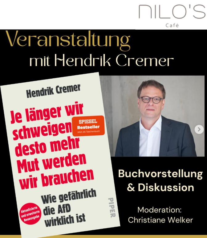 „Wie gefährlich die AfD wirklich ist.“ Buchvorstellung und Diskussion. Moderation Christiane Welker. Wir freuen uns
